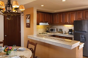 Our spacious one-bedroom Owner Master Suites (850 sq. ft.) are designed for comfort, featuring a king bed, two full marble bathrooms, and a fully equipped kitchen. Relax on your private balcony with breathtaking ocean views over the Pacific Ocean. Room capacity: 4 guests.